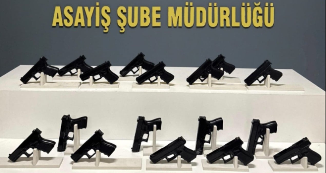 Araçta yapılan aramada 17 ruhsatsız tabanca ele geçirildi.