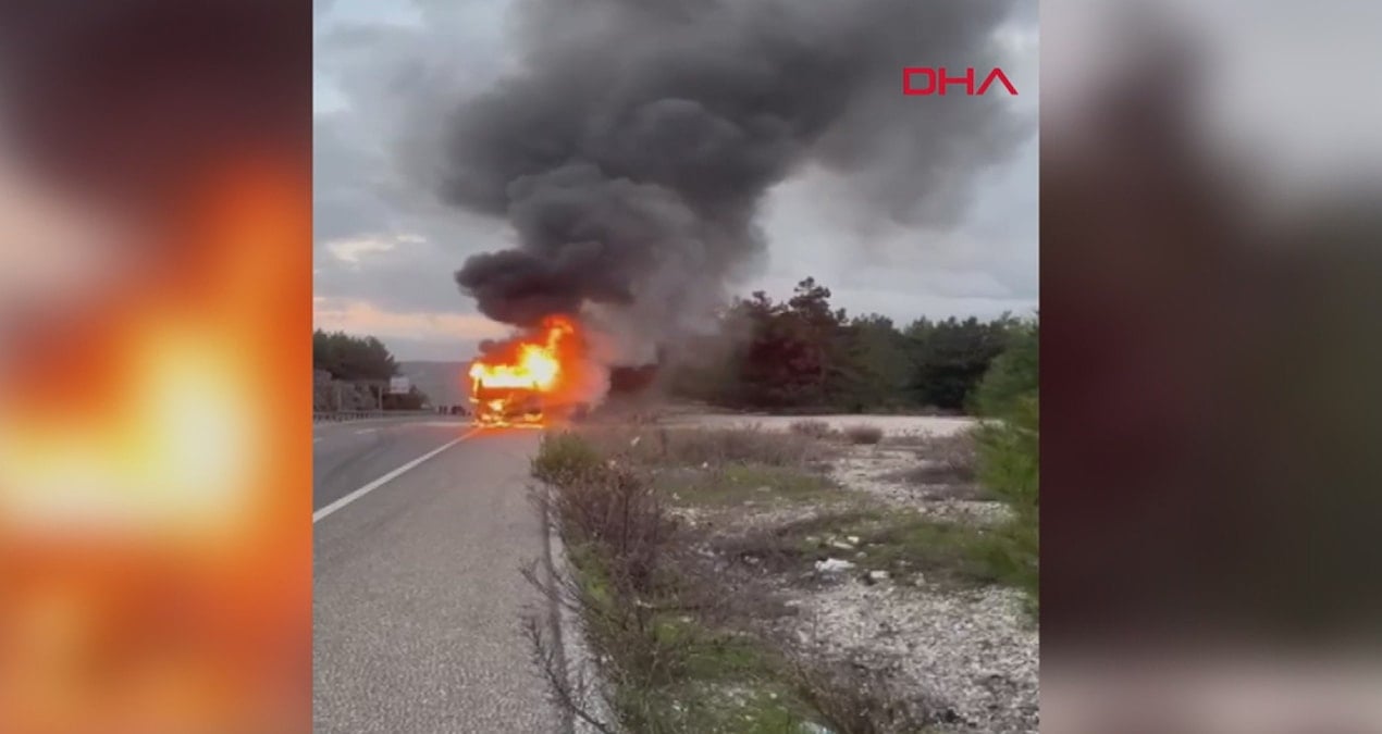 Yangın kısa sürede büyüyerek tüm otobüsü sardı.